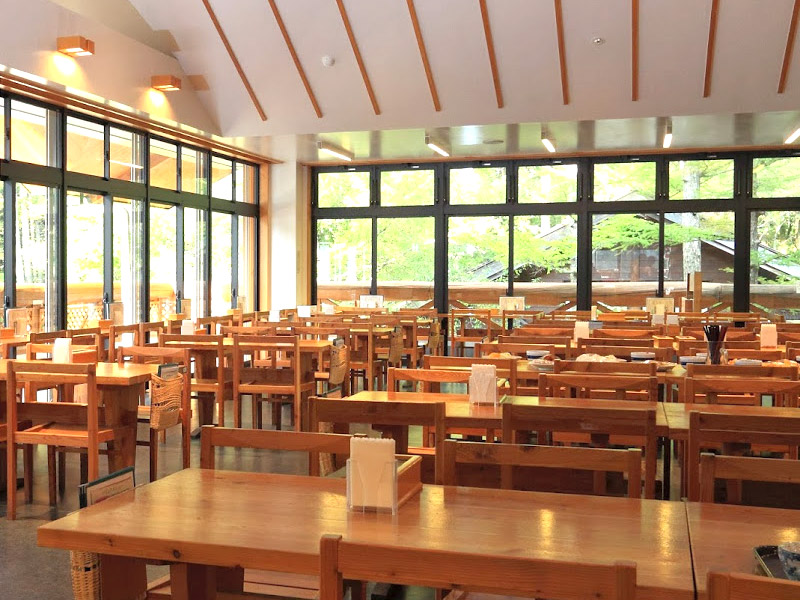 収容100席・明るく開放的。ページ内画像全て©上高地食堂