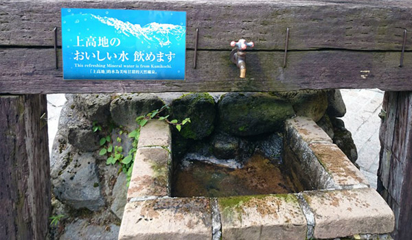 上高地のおいしい水は五千尺ホテル(河童食堂)前の水場で汲み放題♪